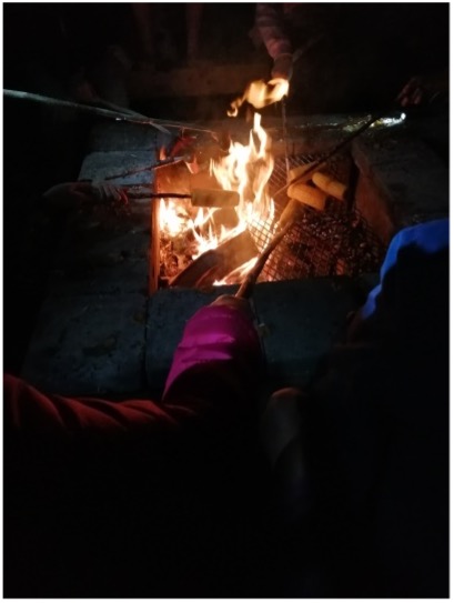 Illat vietimme nuotion äärellä, missä valmistimme ruokaa avotulella. Nuotiolla kokkaaminen oli ryhmällemme sekä opettavaista että nautinnollista.